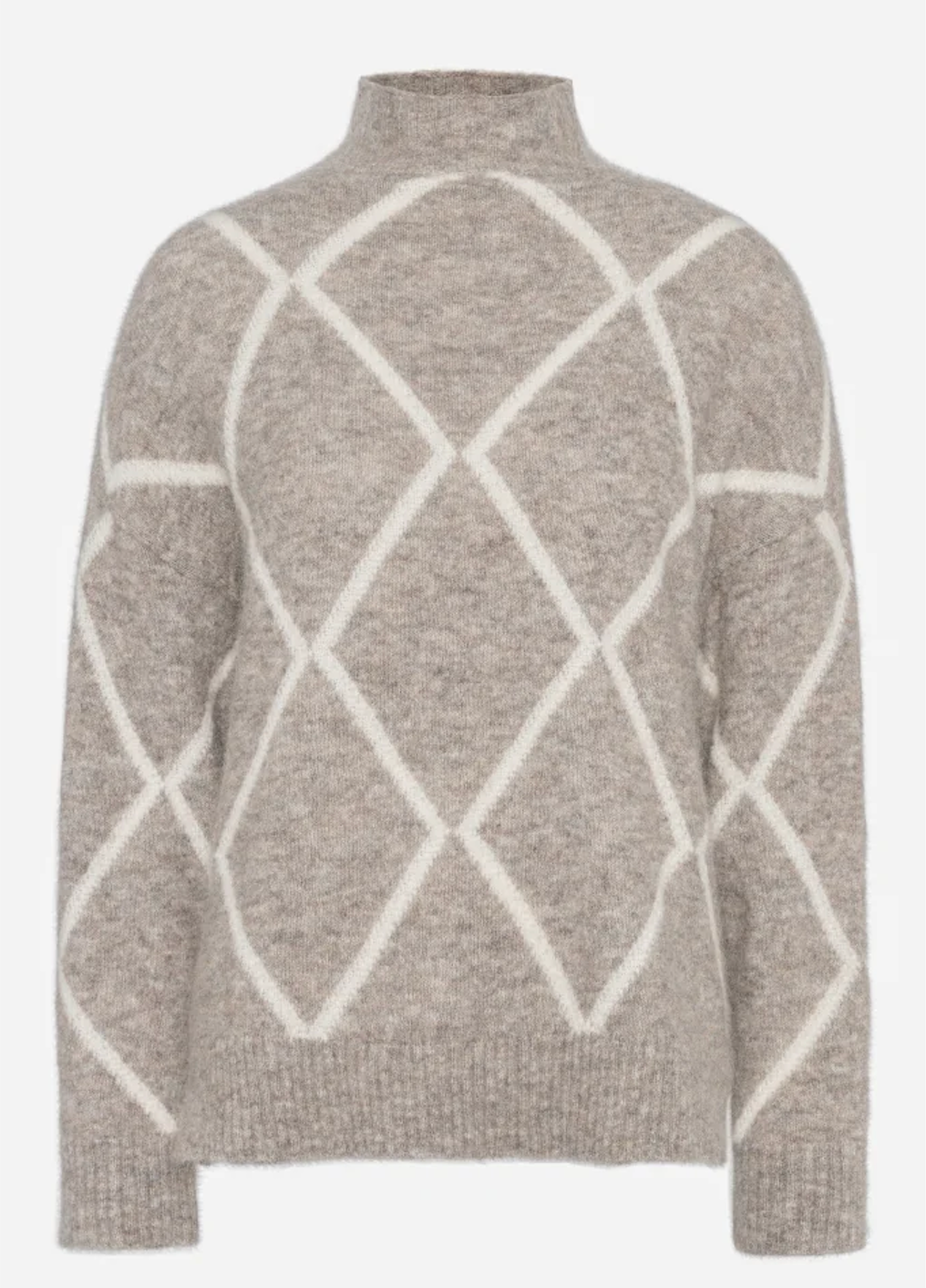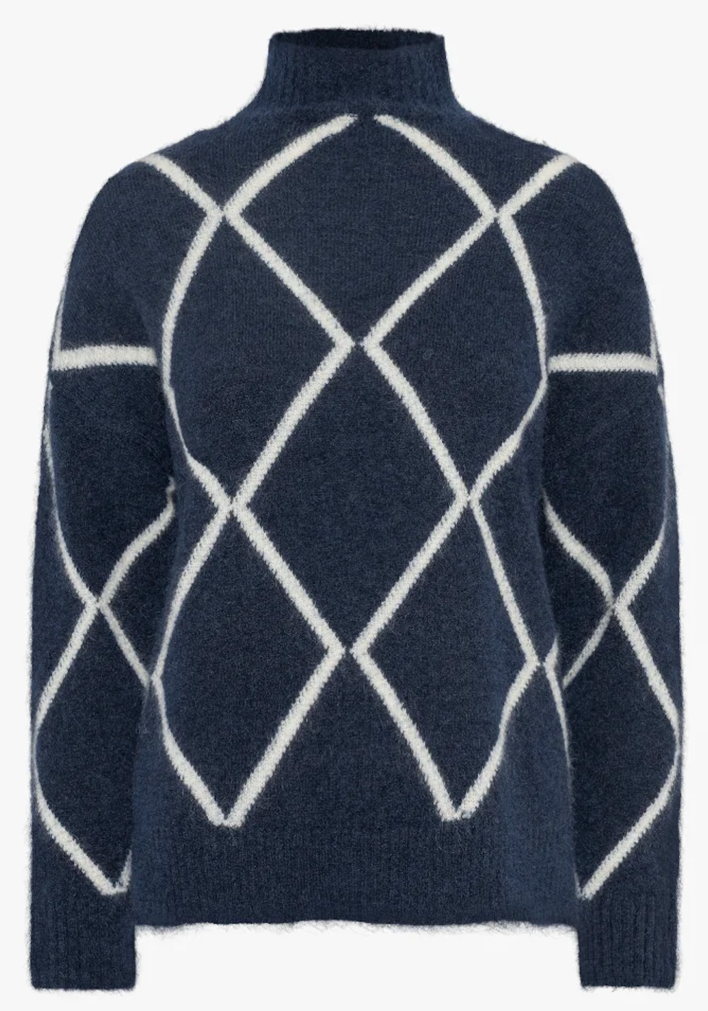 Denne flotte strikken fra RAH finnes i både kaki og marineblå, med et rutete mønster. Genseren har en høy hals som passer perfekt til kjølige høstdager.